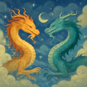 この夢は、あなたが今、自己の内側で大切な対話や調和を図るべきタイミングに来ていることを示しています。もし対立する感情や意見がある場合、それを無理に排除するのではなく、お互いの声をしっかり聴き、調和を目指す姿勢が重要です。二匹の龍の強大なエネルギーを味方につければ、難局も乗り越えられるでしょう。