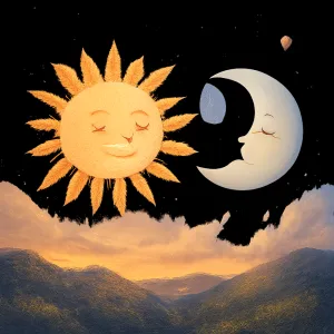 太陽は活力や意志の強さ、明るくポジティブなエネルギーを表し、人生の目的や目標に向かう力を示します。一方月は感情や夢、無意識の世界を表し、柔軟性や神秘的な側面を持ちます。太陽と月が同時に現れる夢は、理性と感情のバランスや、表面的な「計画」や「目標」だけでなく、潜在的な感情や内面的な欲求にも目を向ける必要性を示唆している場合があります。